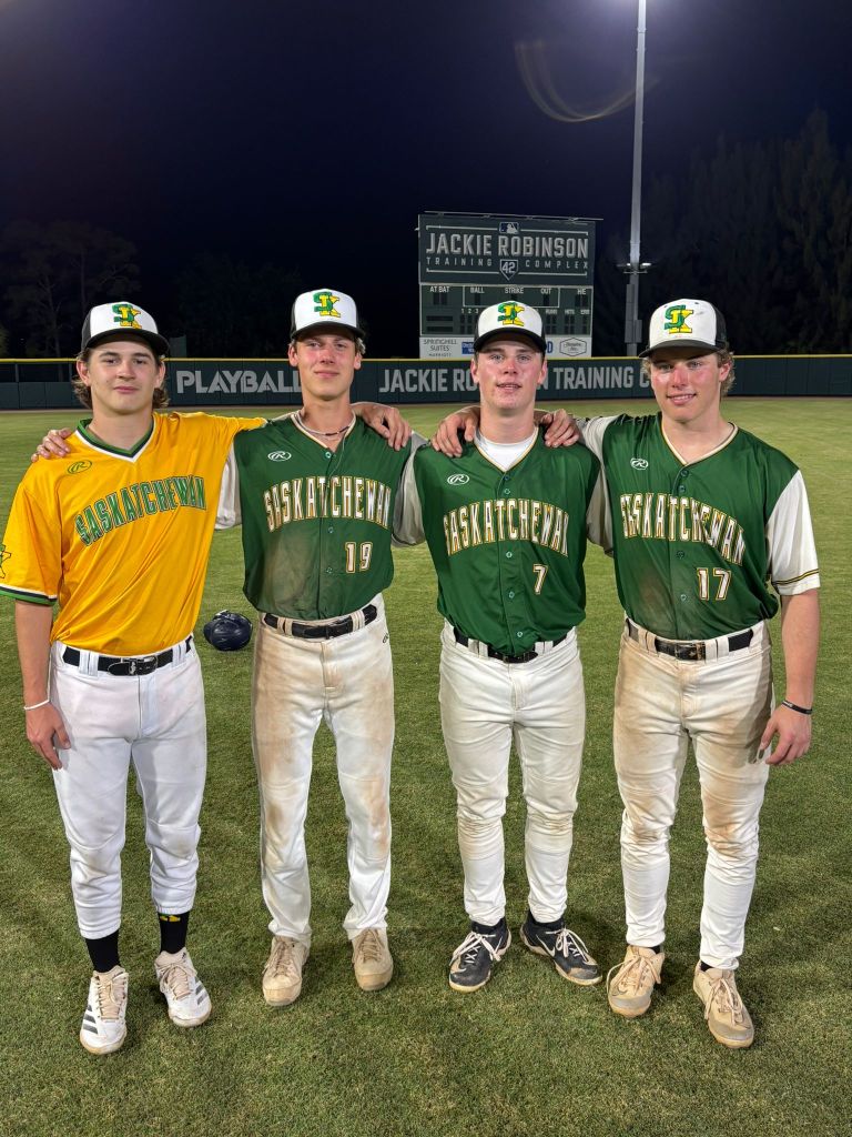 Saskatoon Diamondbacks attending Team Saskatchewan’s Annual Spring Training at the Jackie Robinson Training Complex in Vero Beach, Florida. Left to Right – Sean Coverett, Dylan Pura, Mitchell Rauckman, and Casey Rauckman.